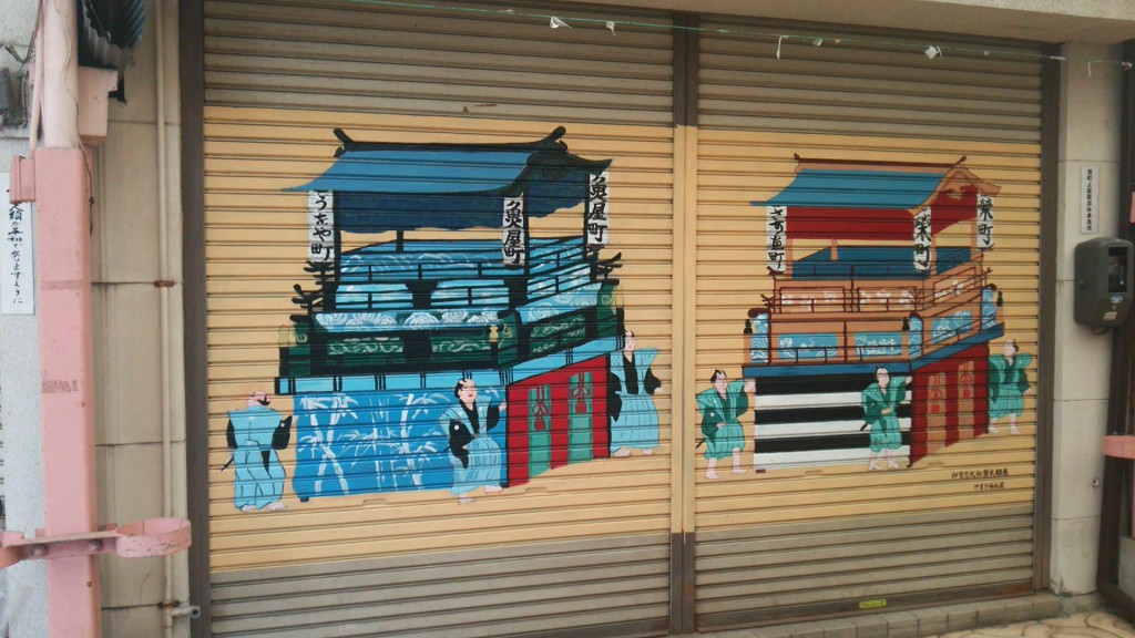 だんじり絵巻をシャッターに描くプロジェクトが始まりました 是非描いてみたい、描いてほしいという方はご連絡ください